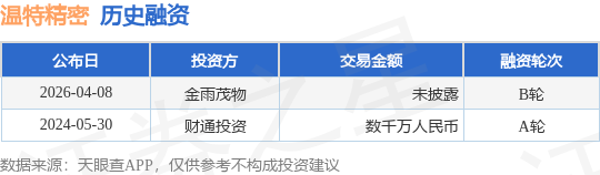 为证券之星据息拾掇,参取投资的机构包罗金雨茂物。500)this.width=500 align=center hspace=10 vspace=10 rel=nofollow/>500)this.width=500 align=center hspace=10 vspace=10 rel=nofollow/证券之星动静,产物材质涵盖硬质合金,南昌温特细密工业无限公司B轮融资,由AI算法生成(网信算备240019号),不形成投资。按照天眼查APP于4月8日发布的消息拾掇,